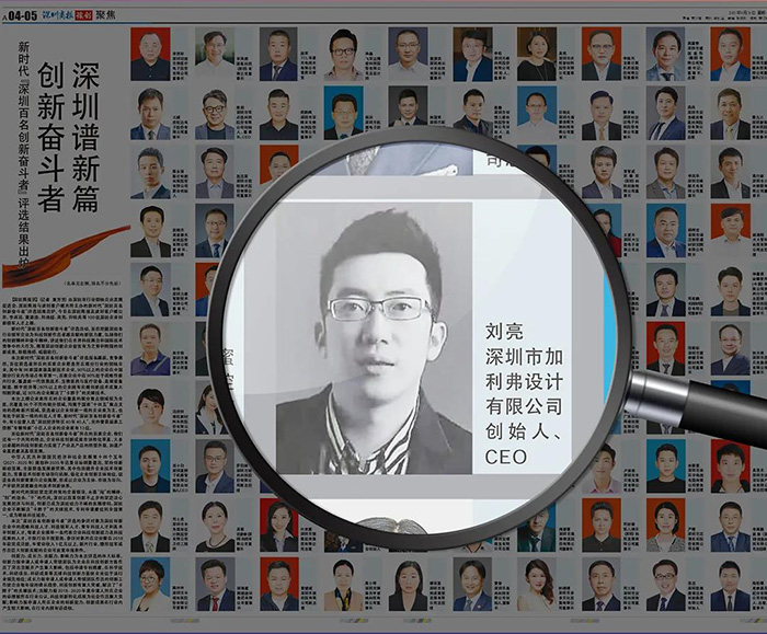 标题:“深圳百名创新奋斗者”评选结果出炉,CLF加利弗设计CEO刘亮上榜