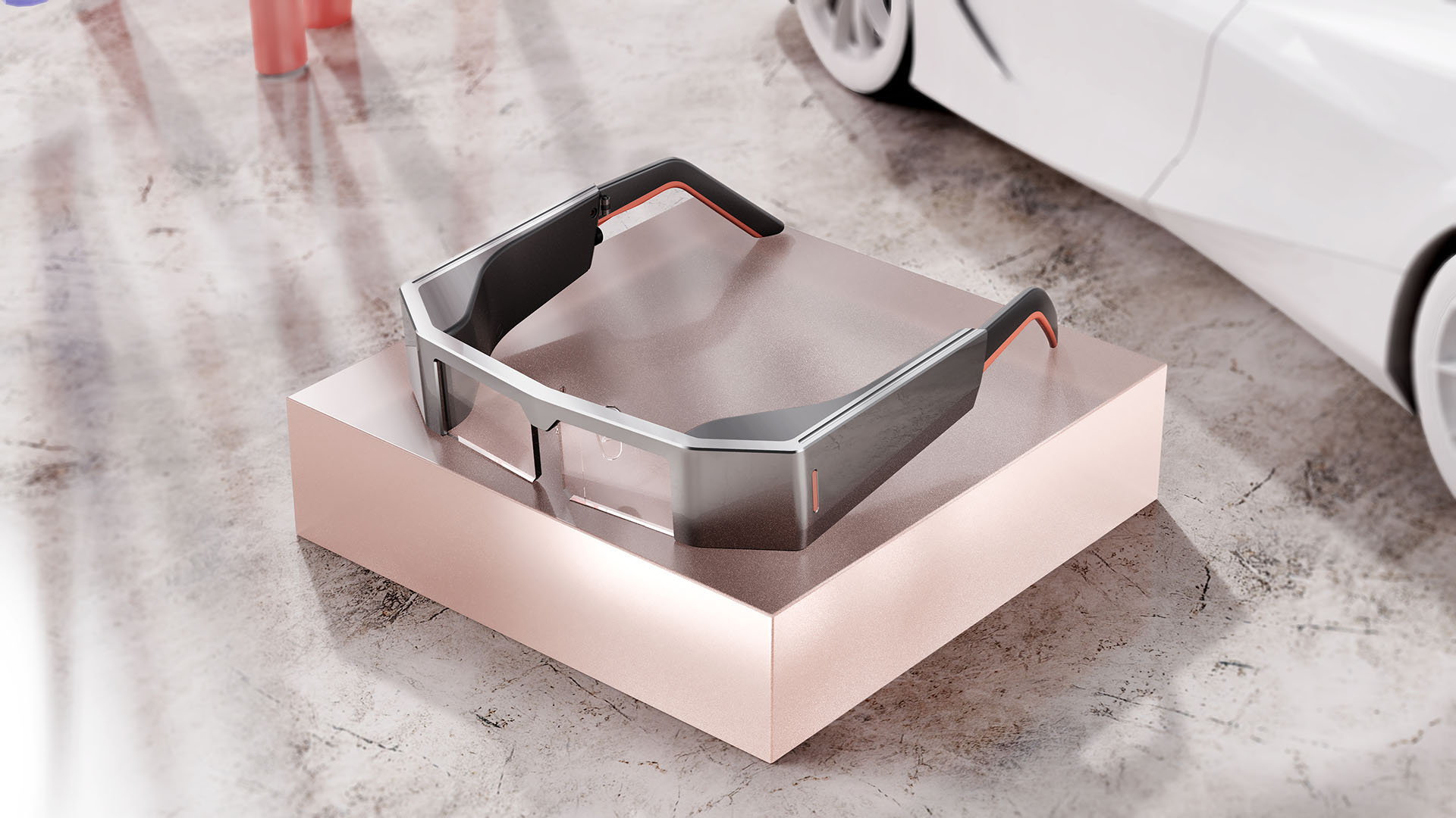 除此之外,应用双色注塑,在镜脚边缘注塑软胶,提高配带舒服度,同时也是AR眼镜点睛之笔,软胶为彩色,丰富AR设计给人视觉效果。加利弗策划设计AR眼镜。