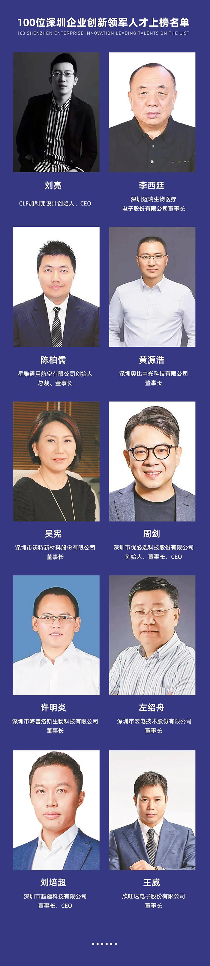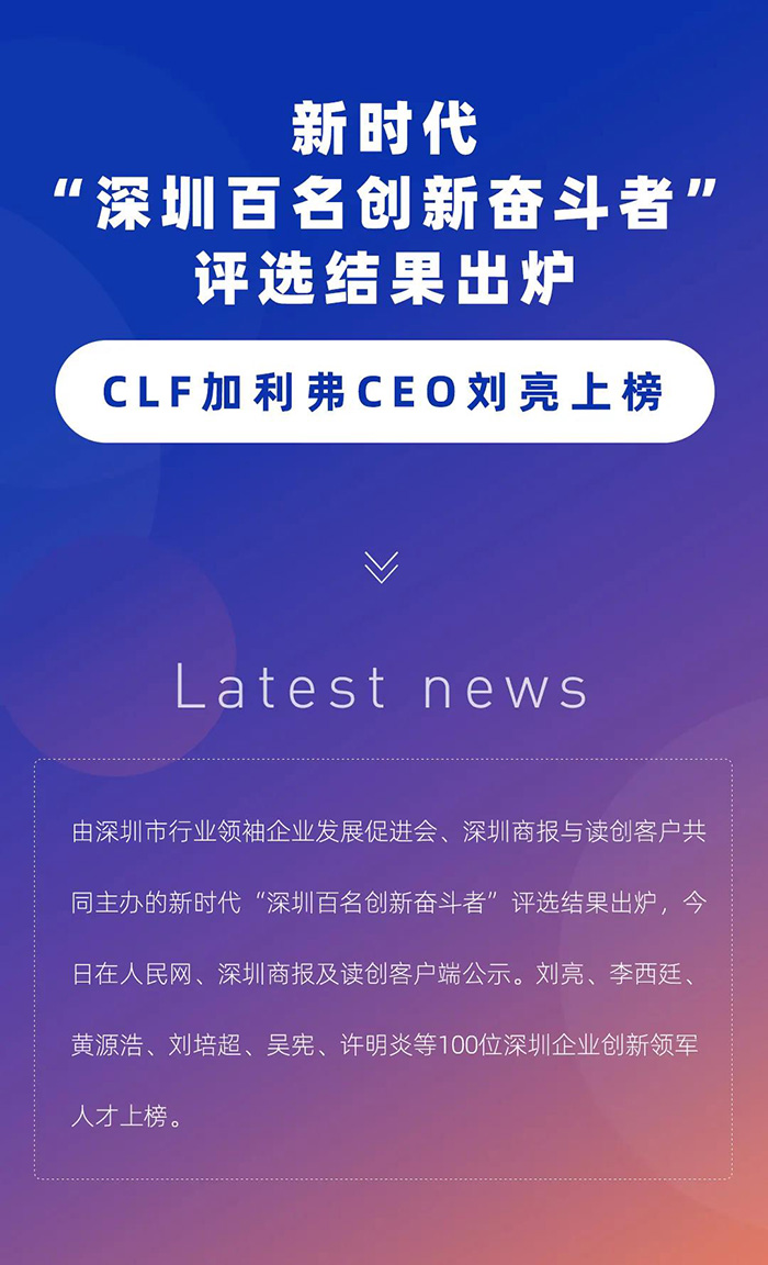 “深圳百名创新奋斗者”评选结果出炉,CLF加利弗CEO刘亮上榜