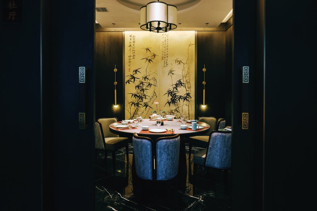 设计中,古色古香的墨绿、白、绿灰、浅棕、砖红等色彩,与黑色石材、木饰面、烤漆画等传统材料相得益彰,辅以现代的金属、艺术涂料,构筑出一个色彩丰富、质感细腻的空间。每一处细节,都透露出对传统与现代融合的深思熟虑。